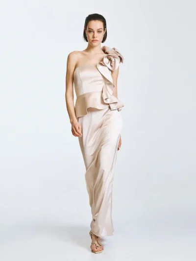 Φόρεμα μάξι με έναν ώμο και βολάν