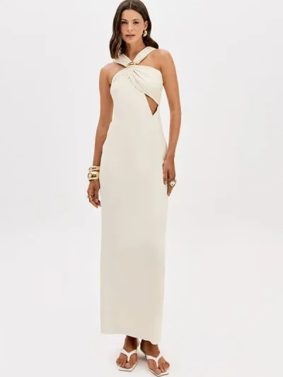 Φόρεμα μάξι πλεκτό με κόμπο