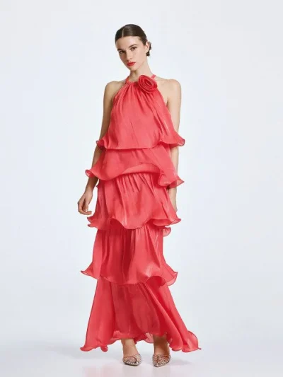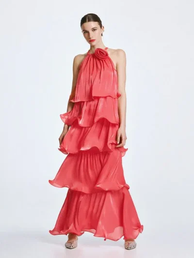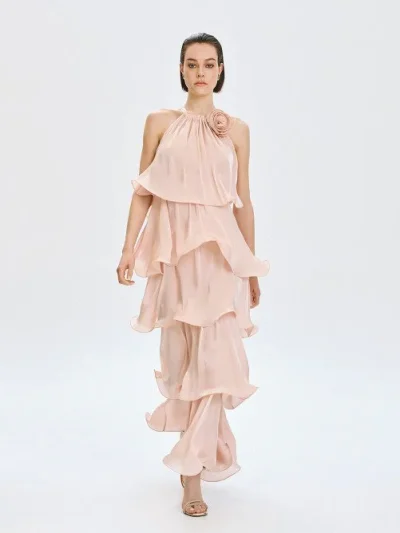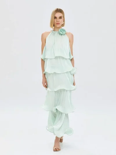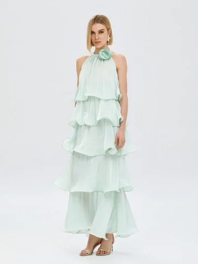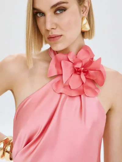 Φόρεμα halter με βολάν και λουλούδι