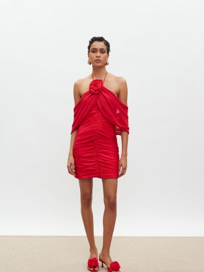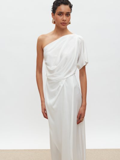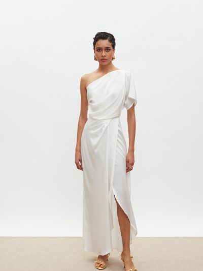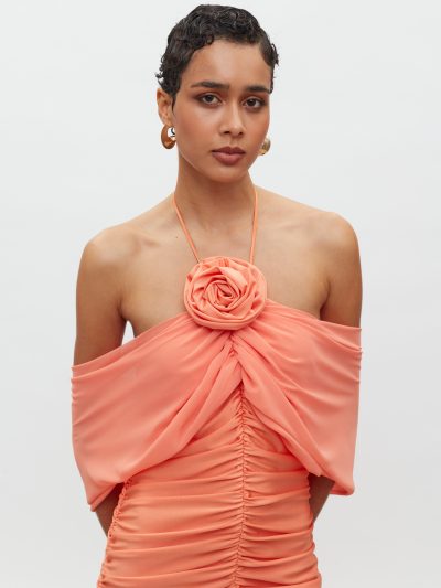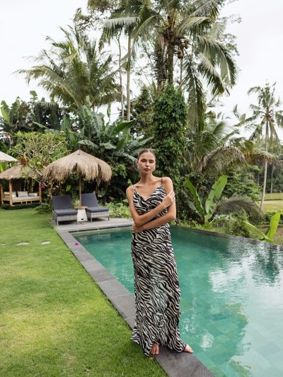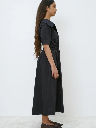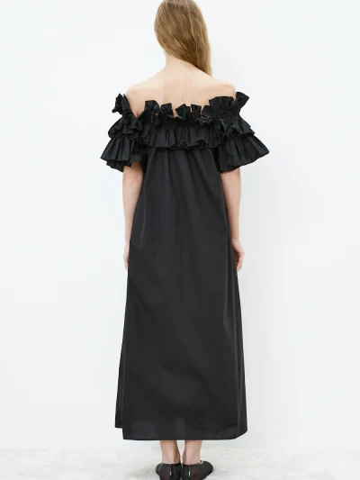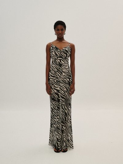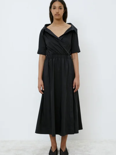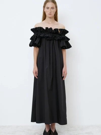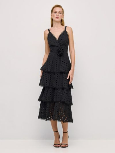Tulipe μαύρο μακρύ σατέν φόρεμα Zoya