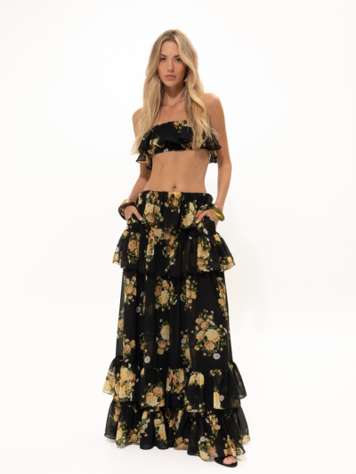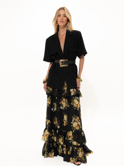 Black Floral Ruffled Skirt