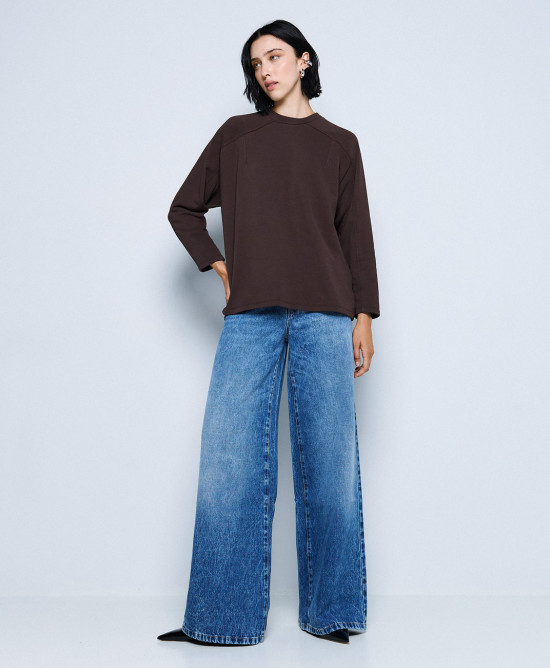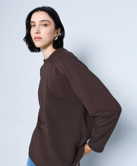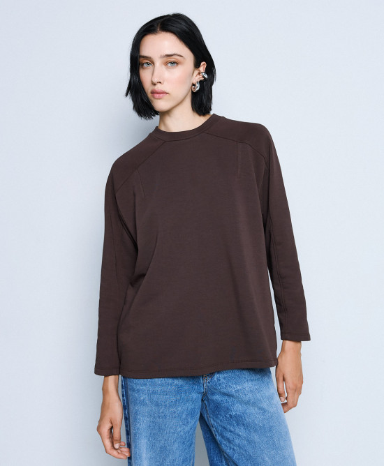 Μακρυμάνικη μπλούζα με στρογγυλή λαιμόκοψη και διακοσμητικές ραφές. Επιλέξτε τη για άνετες και στιλάτες εμφανίσεις.