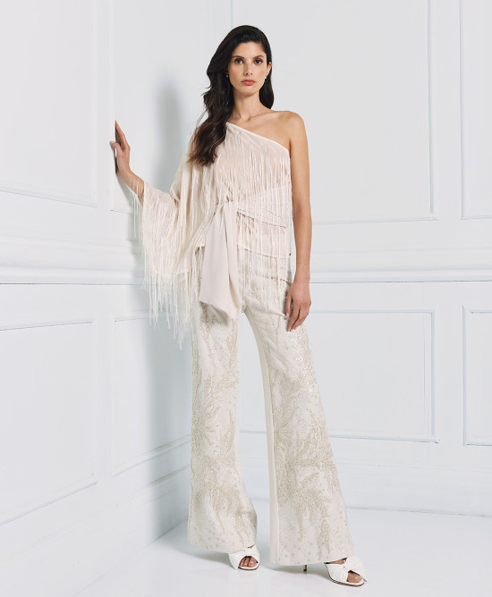 Ψηλόμεση παντελόνα καμπάνα με ιδιαίτερα κεντήματα μπροστά. Επιλέξτε τη για ξεχωριστά occasion looks.