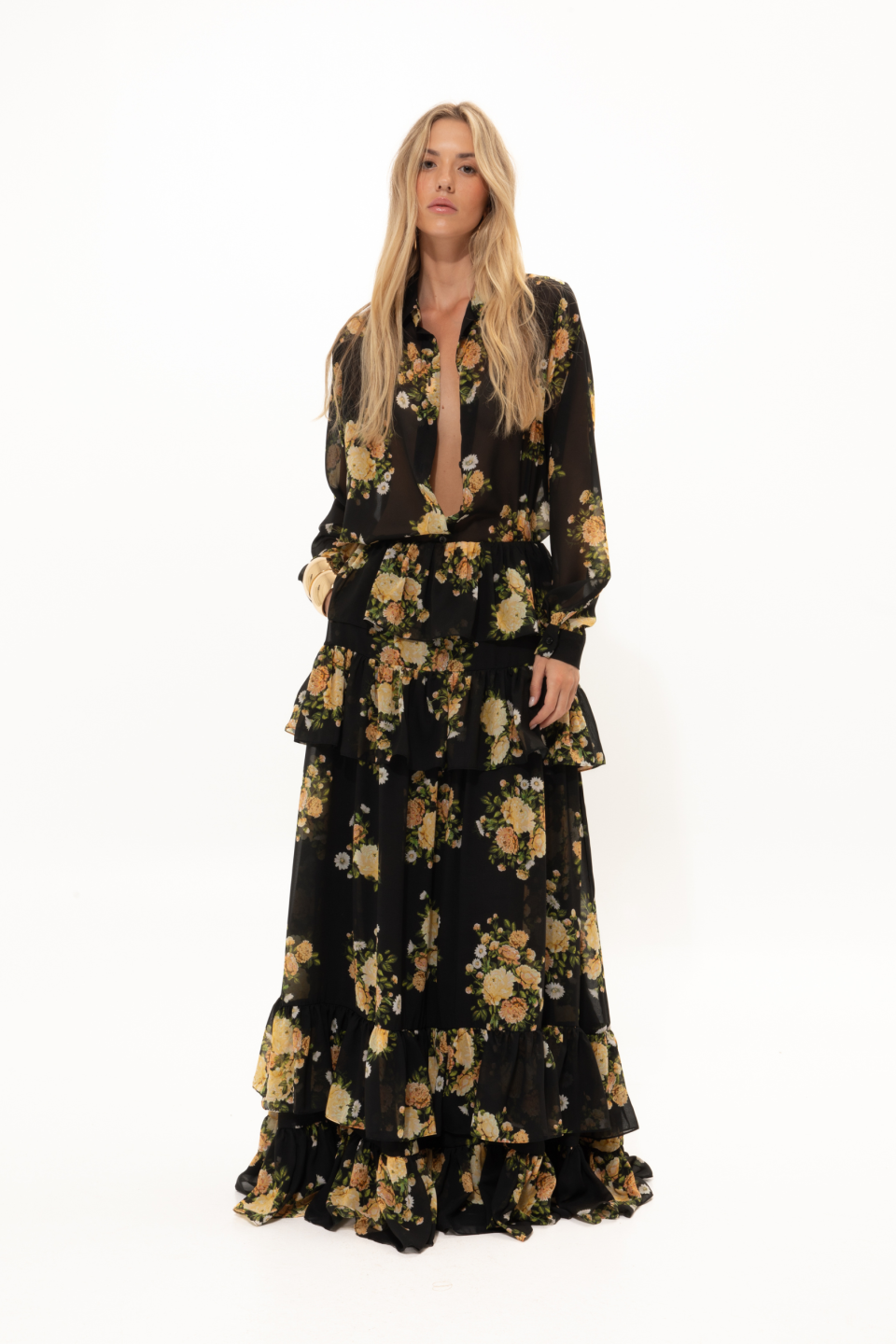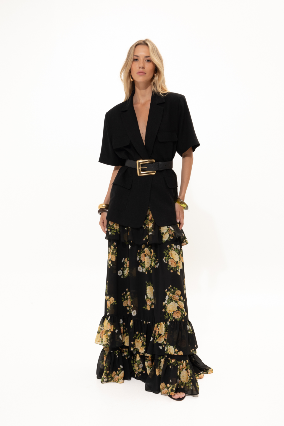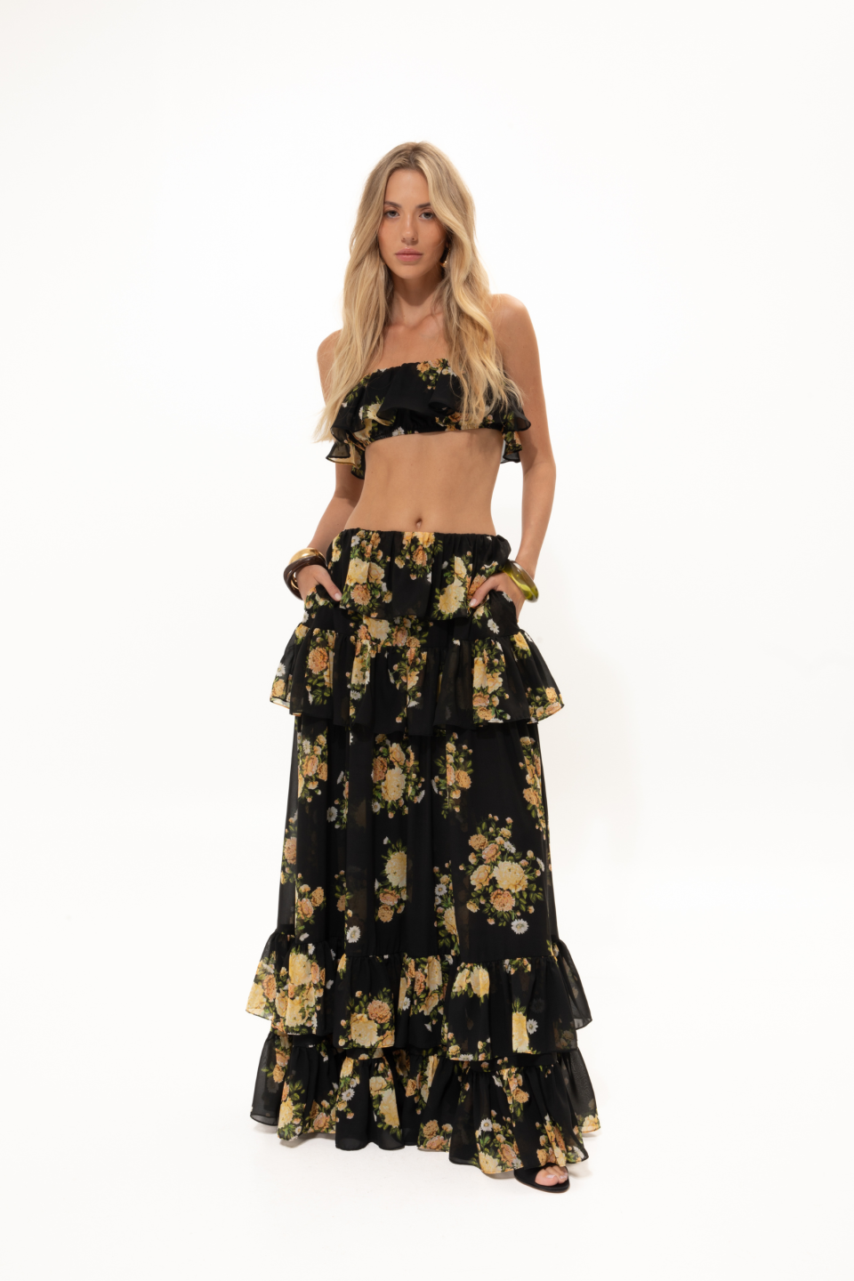Black Floral Ruffled Skirt