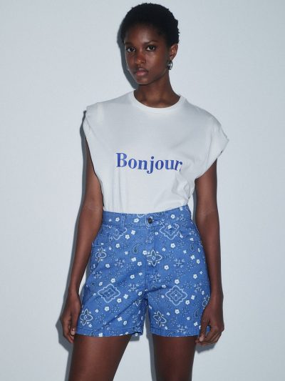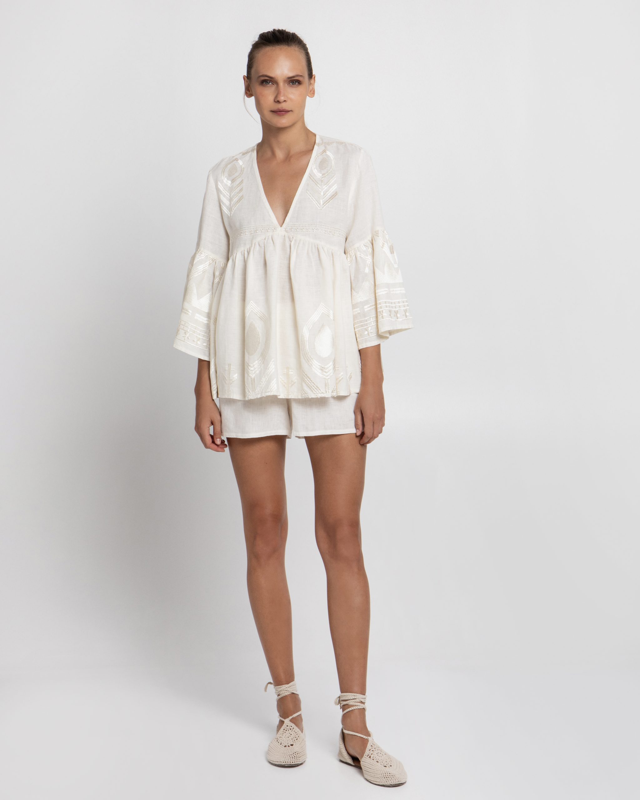 Greek Archaic Kori Κεντημένο Λινό Σορτς