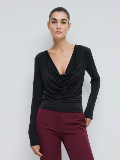V-neck blouse in 100% rayon.